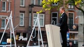 André van duin geeft op de dam zijn toespraak tijdens de dodenherdenking van 4 mei.